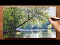 How to draw landscape painting "#30"/ Draw forest and stream / Acrylic l...