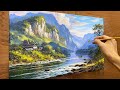 How to draw landscape painting #23 - Mountain and stream landscape / Acr...